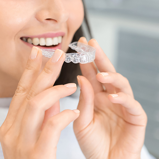 従来の金属製の装置を使った矯正治療に比べて目立たないため、見た目を気にせず治療を受けられます。