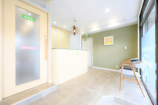 来院されましたら、こちらの受付までお越しください。スタッフが笑顔でお迎えいたします。