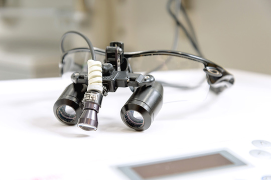 お口の中の患部を拡大して見られる歯科用のルーペです。より精密な治療を可能にします。
