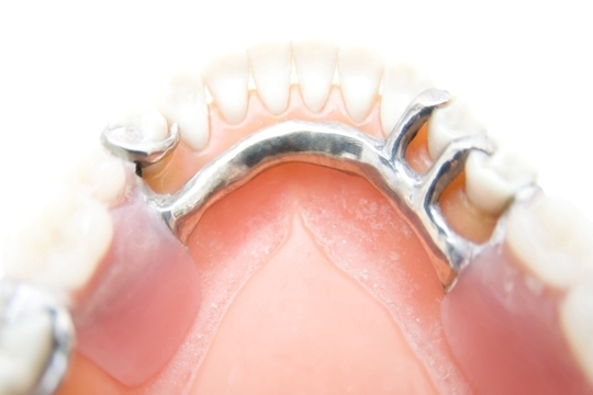 治療の説明:入れ歯の土台となる床(歯ぐきに接する部分)へ、アレルギーのリスクが少ない金属を用いる入れ歯です。従来のプラスチックの入れ歯に比べて薄く、違和感が少なく済む点が特徴です。また熱伝導が良く、お食事がますます美味しく感じられます。