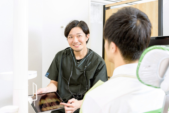 治療前後には必ず、お口の中を撮影する「口腔内カメラ」を用いて撮影をし、その写真をお見せしながら現在の状況を患者さまにご説明しております。